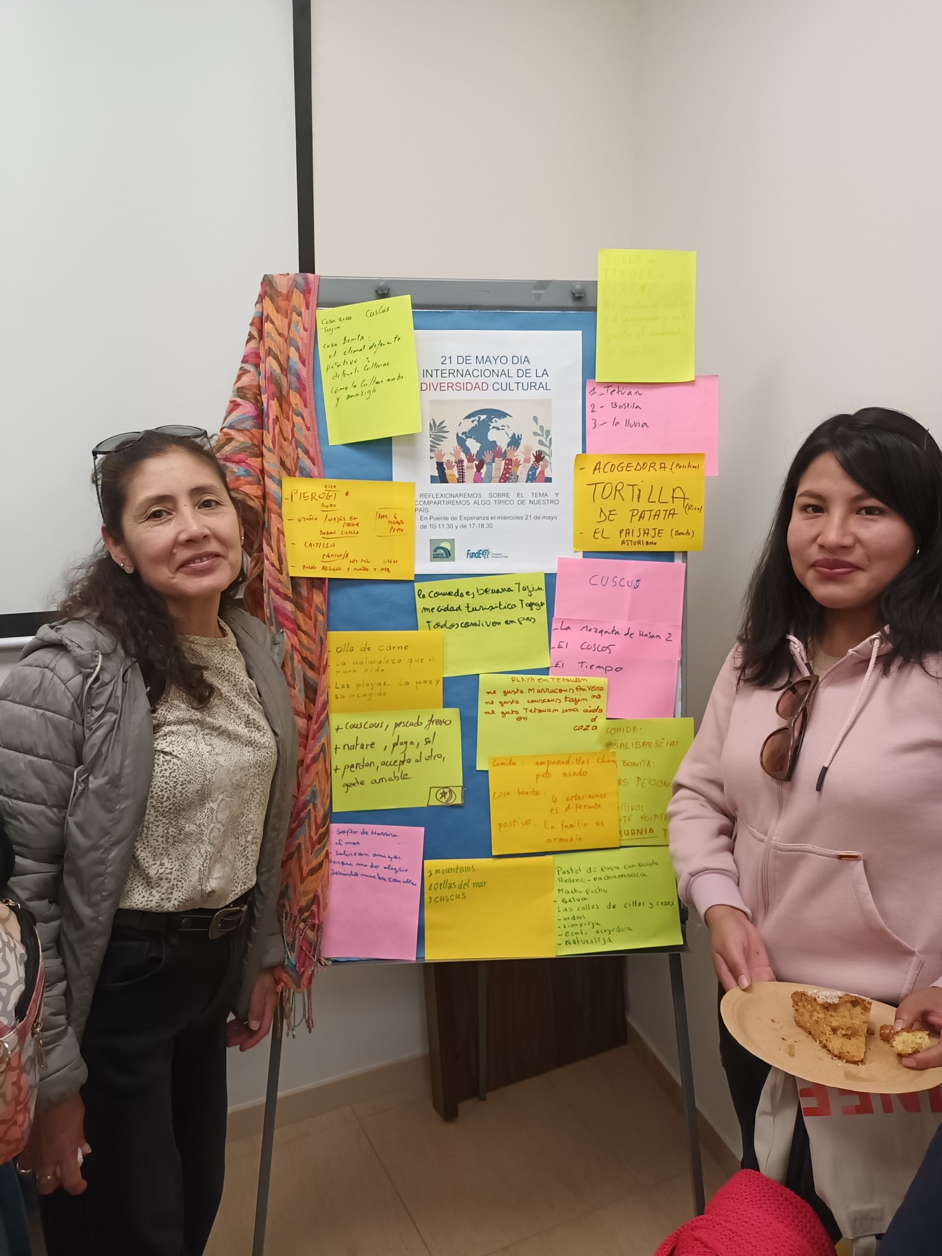 E l 21 de mayo celebramos en Puente de Esperanza el día internacional de la diversidad cultural. Este día especial nos hace entender que tod@s somos diferentes pero a la vez iguales, nuestras diferencias no nos impiden pasarlo genial junt@s. Las mujeres de diferentes países (Túnez, Marruecos, Perú, República Dominicana ..) compartieron comidas típicas muy ricas, con el té y refrescos . Al final nos regalaron una pulsera de diversos colores, reflejo de nuestra identidad y diversidad de colores.