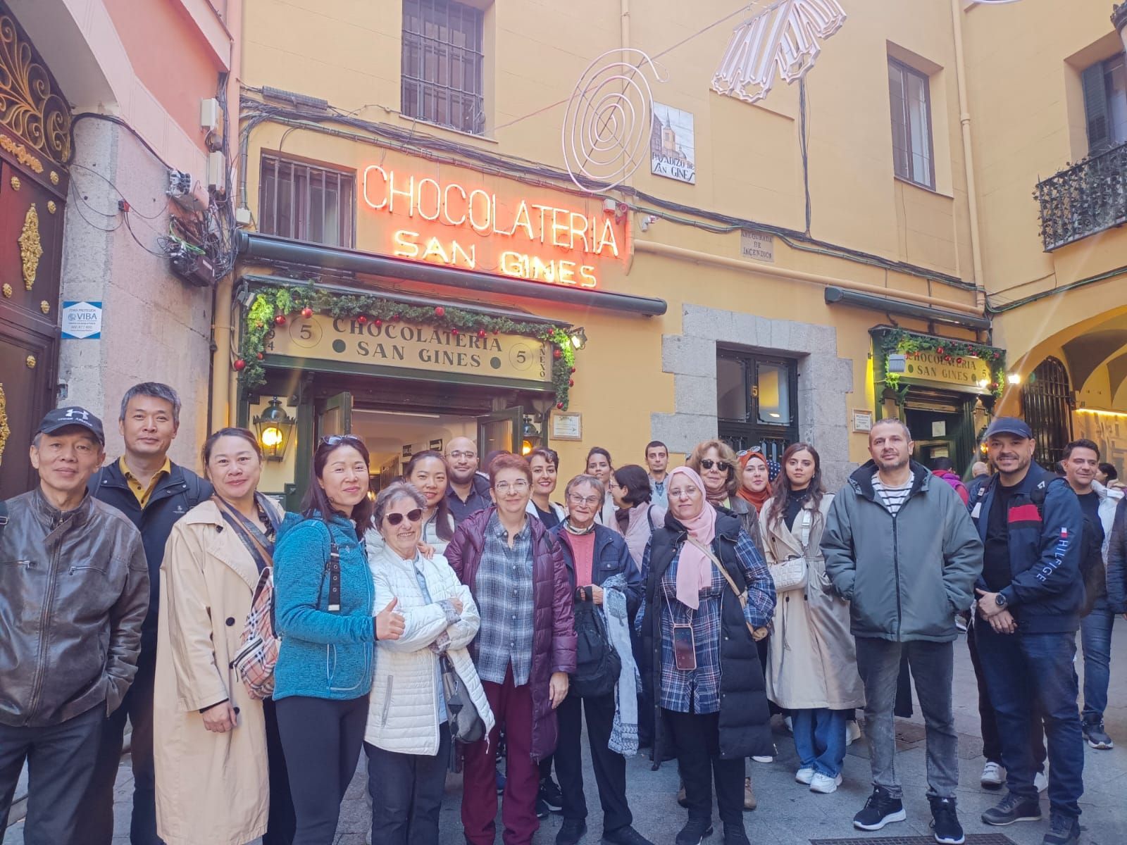 “El lunes día 20 de noviembre tuvimos un fenomenal paseo por el Centro de Madrid. Empezamos desayunando en la famosa chocolatería San Ginés con un estupendo chocolate con churros, después fuimos a ver el Teatro de Ópera y el Palacio Real, con una parada en la Catedral de Almudena. Que visitamos por dentro y nos gustó mucho. Caminamos por la calle Mayor haciendo una parada en la Plaza de La Villa y terminamos en la Plaza Mayor donde conocimos la antigua panadería de Madrid. Llegando a Sol nos despedimos. Me siento muy agradecido a Puente de Esperanza.”
