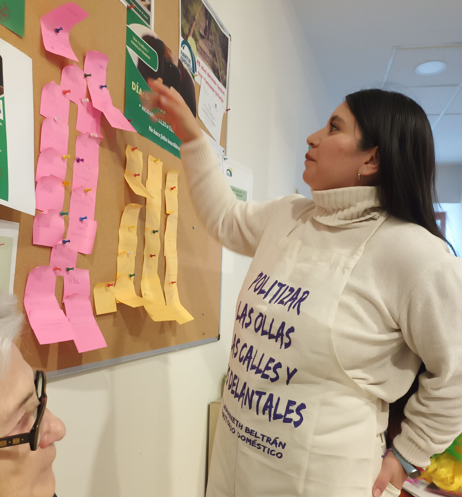 Presentamos a las mujeres del Colectivo Territorio Doméstico de Lavapiés, que animaron la actividad: Nos repartieron 2 papeles en los que escribir una palabra de lo que nos sugiere el término: MUJER y otra de lo que nos sugiere: EMPLEADA DEL HOGAR O AMA DE CASA
